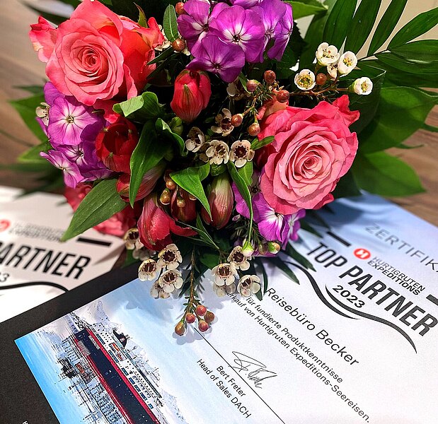 Eine große Ehre für unser Reisebüro: TOP PARTNER 2023 von Hurtigruten Expeditions-Seereisen!